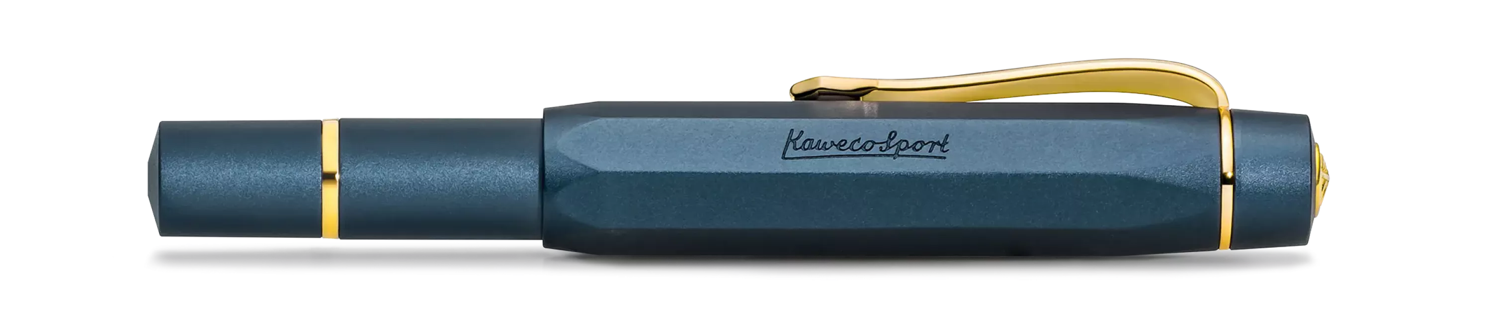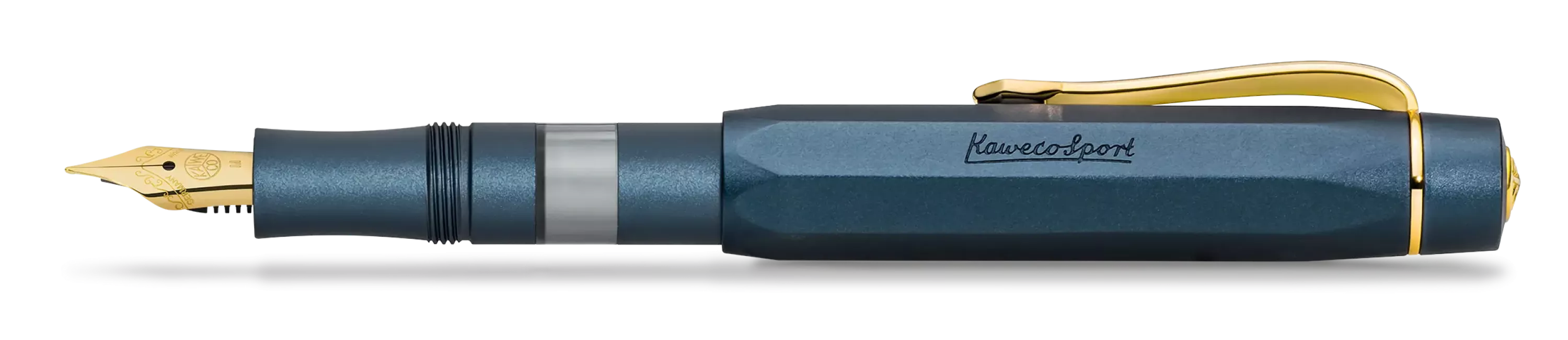 Mit einer Länge von nur 10,5 cm geschlossen (13 cm mit umgesteckter Kappe) ist der Kaweco Piston Sport AL Navy/Gold der kleinste Kolbenfüller seiner Art. Das ausgewogene Gewicht und der ergonomische Schaft sorgen für höchsten Schreibkomfort – auch bei langen Schreibsessions.